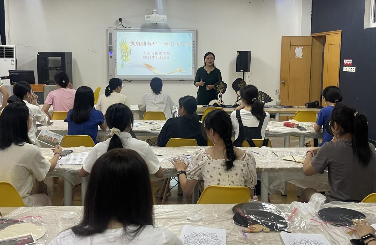 在这个温柔的季节里,人文与传媒学院迎来了一场别开生面的文化盛宴——“执扇韵芳华,素书传真情”女教师女学生交流活动。本次活动不仅是一次手工艺的探索之旅,更是师生间情感交流的温馨桥梁。让我们一同走进这场融合古典美与现代情的活动现场,感受那份由内而外散发的文化韵味与匠心精神。