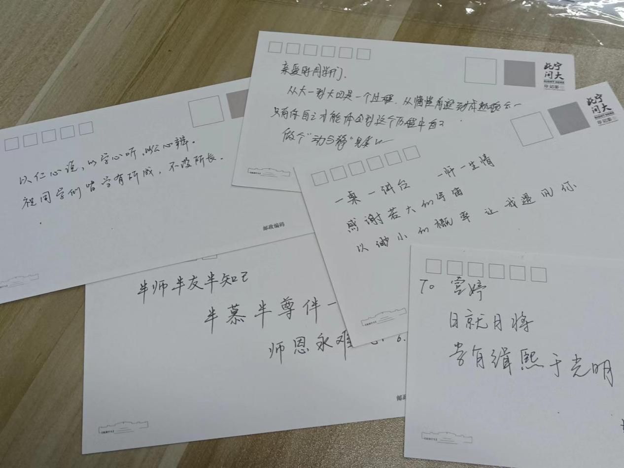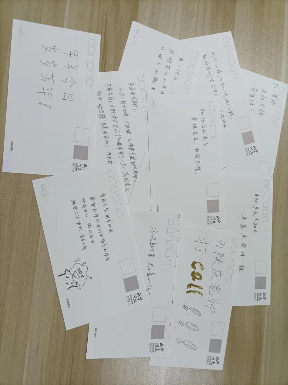 完成手中的漆金扇后,师生们纷纷拿起笔,在特制的明信片上写下对彼此的祝福与寄语。这些文字,或深情款款,或幽默风趣,每一句都承载着真挚的情感与美好的愿景。有的分享学习心得,有的回忆共度的时光,有的则是对未来的美好期许。当这些明信片在师生间传递开来,不仅拉近了心与心的距离,更让这份温情跨越时空,成为彼此心中最宝贵的记忆。