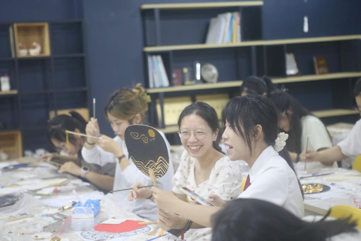 在古色古香的氛围中,自拍 的师生们化身为匠人,手持细笔,轻蘸金漆,于扇面之上勾勒出一幅幅精致图案。每一笔,都蕴含着对传统文化的敬畏与传承;每一划,都闪耀着创意与灵感的火花。从素扇到漆金扇的华丽蜕变,不仅是技艺的展现,更是心灵的触碰与对话。在这里,我们共同见证了古老技艺的新生,让这份美好得以延续。