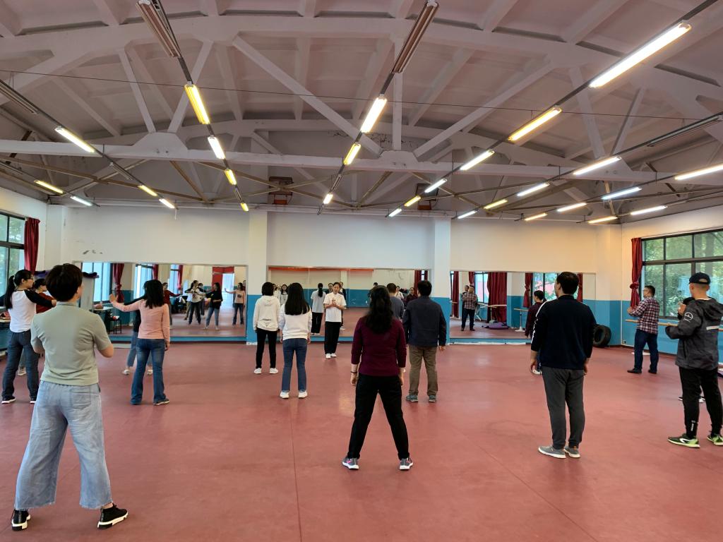 10月21日,自拍 分工会在体育学院形体房组织全院教职工学习八段锦。