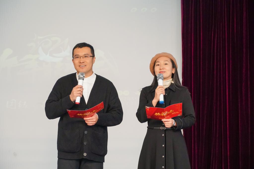 此次新年联谊会汇集了中文学系、历史学系、新闻传播学系、对外汉语教学部以及行政教辅各个单位选送的14个节目,节目精彩纷呈,令人轻松愉悦。一段《极速八段锦》拉开序幕,《小人舞》《小鸡小鸡》《三句半》《祝酒歌》诙谐有趣,诗朗诵《在田野上打柴火》清新如风,还有黄梅戏《天女散花》、越剧《春题湖上》、国际范儿的《gaudeamus igitur》、《凡人歌》《青花瓷》《因为爱情》,金嗓子们纷纷登场,全体院领导联袂表演的诗朗诵《走向远方》《面朝大海、春暖花开》则把联谊会推向高潮。最后新闻传播系全体教师共同演绎歌曲《明天会更好》,一曲唱出了人文学院的团结和谐与共同的心声。