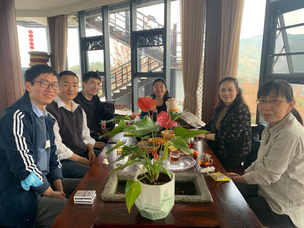 下午老师们又赴俞氏五峰茶园品茶,春天的茶园,绿树环绕,翠竹婀娜,茶香四溢。最引人注目的就是悬在空中的茶壶,没有支点却能水流不断,老师纷纷拿出手机,“打卡”留念。在山顶观景台上老师们品茗叙话,交流分享工作学习心得,在清幽茶香中度过了美好的时光。