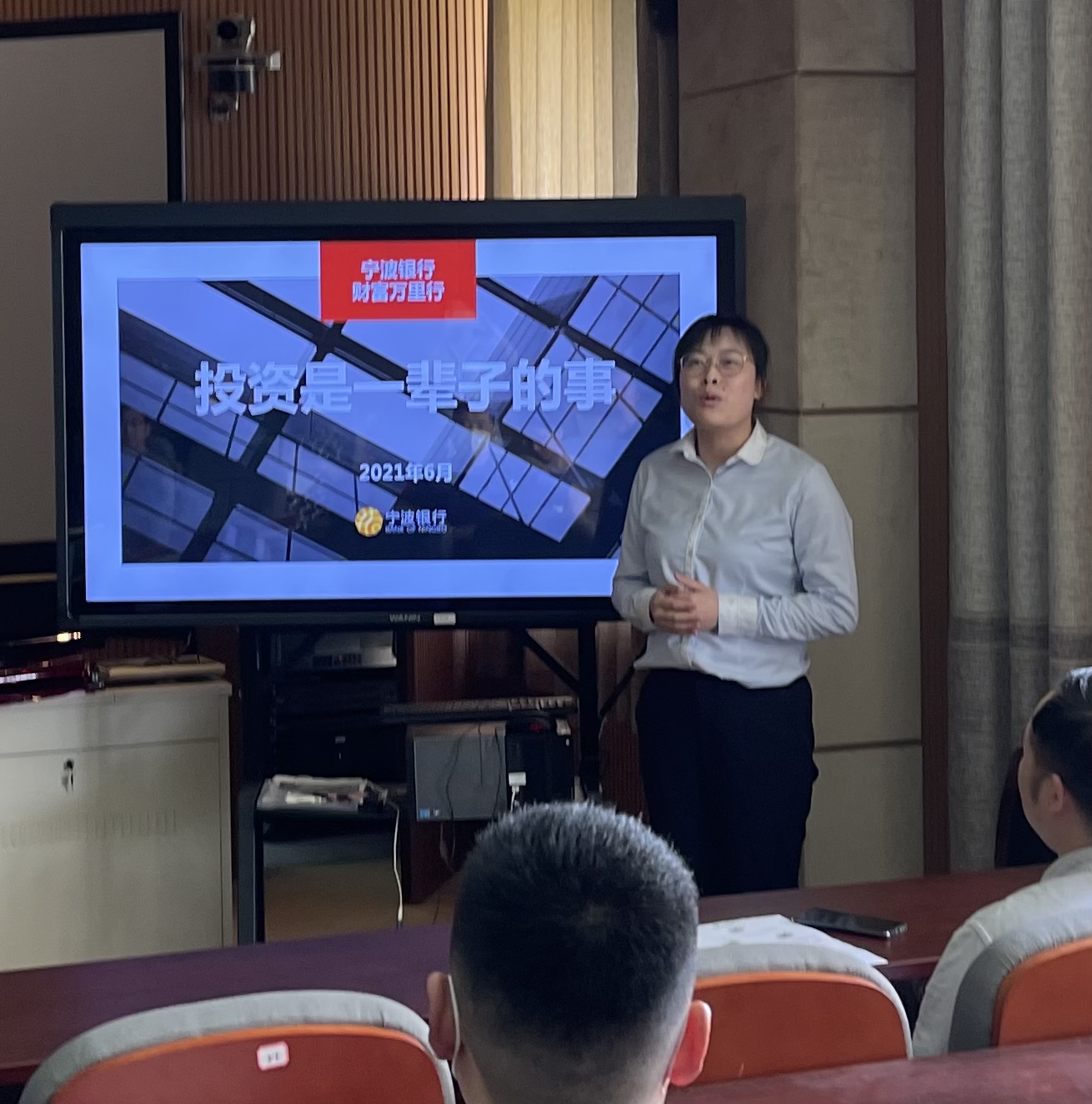 为增加老师们的投资意识,6月9日,自拍 分工会联合宁波银行甬江支行在包玉书科学楼104报告厅举办了理财知识宣讲活动。