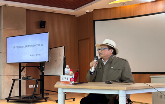 2023年4月25日下午一点半,中国艺术研究院研究员、博士生导师、中国少数民族戏剧学会副会长兼法人秦华生教授,应邀作了题为“中国古代四大美女戏研究”的讲座,讲座由周景耀老师主持。