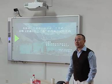 东校区10号楼208室作了名为《本体论、生成论、认识论、工夫论:理解<道德经>之“道”的四种尝试性进路》的讲座,该讲座为自拍