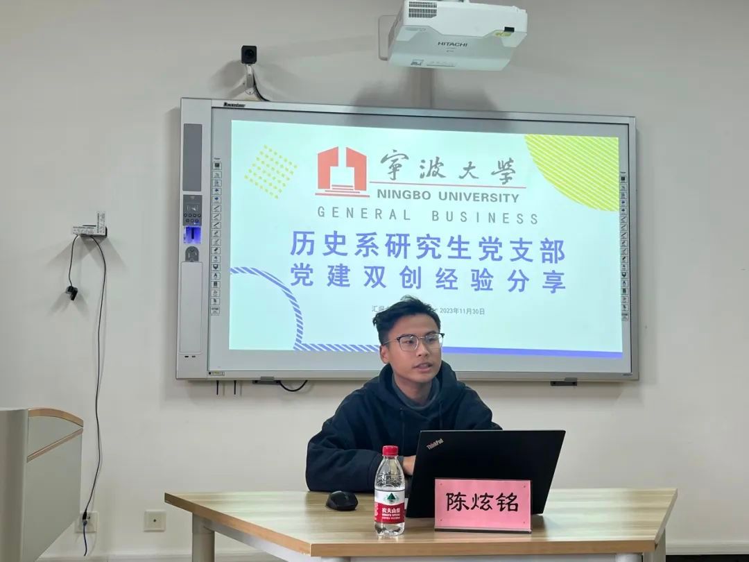 党建工作样板党支部和研究生样板党支部负责人作党建“双创”工作交流。历史学系教师党支部副书记李翔老师着重介绍了支部党建与业务“双融双促”举措,结合专业特点和“四史”教育,实现师生互动,本硕联动,积极打造党建品牌。历史系研究生党支部书记陈炫铭结合党建双创项目的申报经历,与学员们重点分享了申报文本的撰写要求、双创建设的基本模式、主体方向以及模块构架。