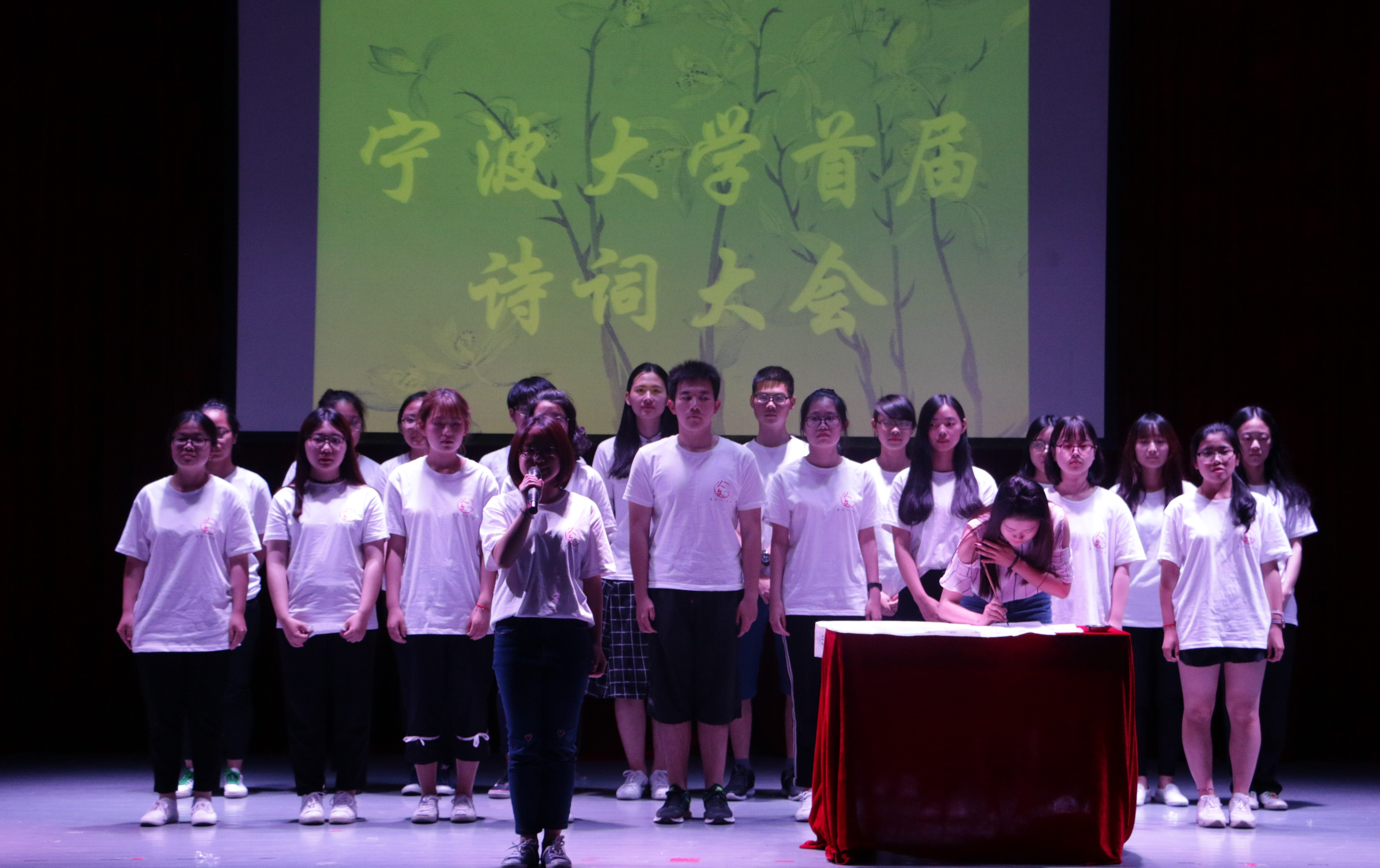 首届诗词大会参赛选手经过为期一月的初赛、复赛的层层选拔,当晚在锦绣小剧场决赛舞台上展开激烈角逐。现场比赛分为“龙争虎斗”、“金戈铁马”、“万象森罗”、“擂主争霸”四个环节,选手根据诗词抢答、看画吟诗、依字猜诗等不同题型比拼作答。张如安教授、薛显超老师和周景耀老师三位评委对比赛各环节中出现的部分诗词做出精彩而又深刻点评。张如安教授表演了经典国学文化——吟诵,赢得台下观众阵阵掌声。怡韵舞蹈社、草尖相声社、书画协会、校园十佳歌手等社团也为本届诗词大会献上了精彩节目。晚会最后,自拍