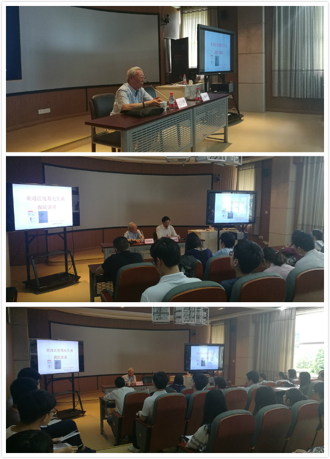 2017年5月16日下午,著名编辑、文学评论家汪兆骞受人文学院的邀请,在10幢104为师生们带来了“见证当代文学的腾飞”讲座,向人文学子讲述了自己编辑生涯中与王蒙、王朔等作家的交往历程,讲座由骆明伟副书记主持。