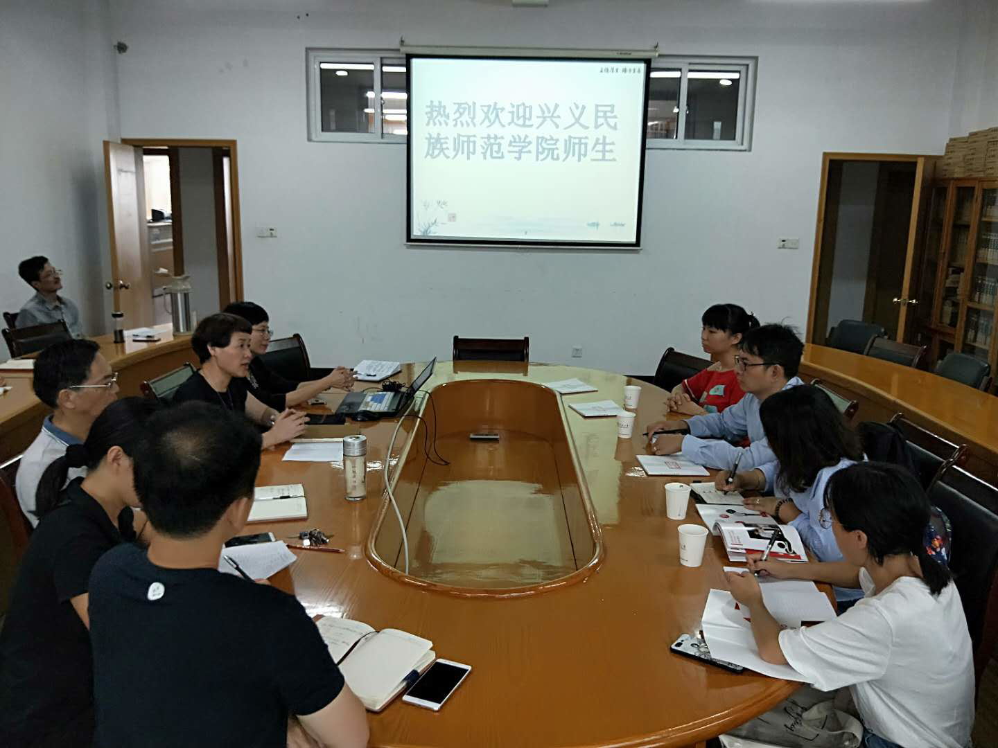 911日下午,自拍 在216会议室举行兴义民族师范学院师生来校挂职、访学、交流欢迎会,兴义民族师范学院文传雷励院长,政史学院刘立老师及2名学生,自拍 党政领导、行政人员参加欢迎会。
