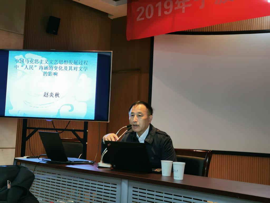 2019年12月6日上午九点,湖南师范大学文学院院长,文艺学专业、比较文学和世界文学专业博士生导师,湖南省文艺理论学会会长,《中国文艺研究》主编,赵炎秋教授来我院104报告厅做题为《中国马克思主义文艺思想发展中“人民”内涵的变化及其对文学的影响》的讲座。赵教授结合中国共产党的发展历史,通过重点阐述毛泽东在湖南农村调查中逐渐树立起来的“人民”观,以及在以后的战争和社会主义建设不断发展完善的过程,梳理出中国马克思主义文艺思想发展中“人民”观内涵变化的历史。同时,又深入浅出,资料详实地论述了马克思主义文艺思想中“人民”内涵对文艺的影响。自拍