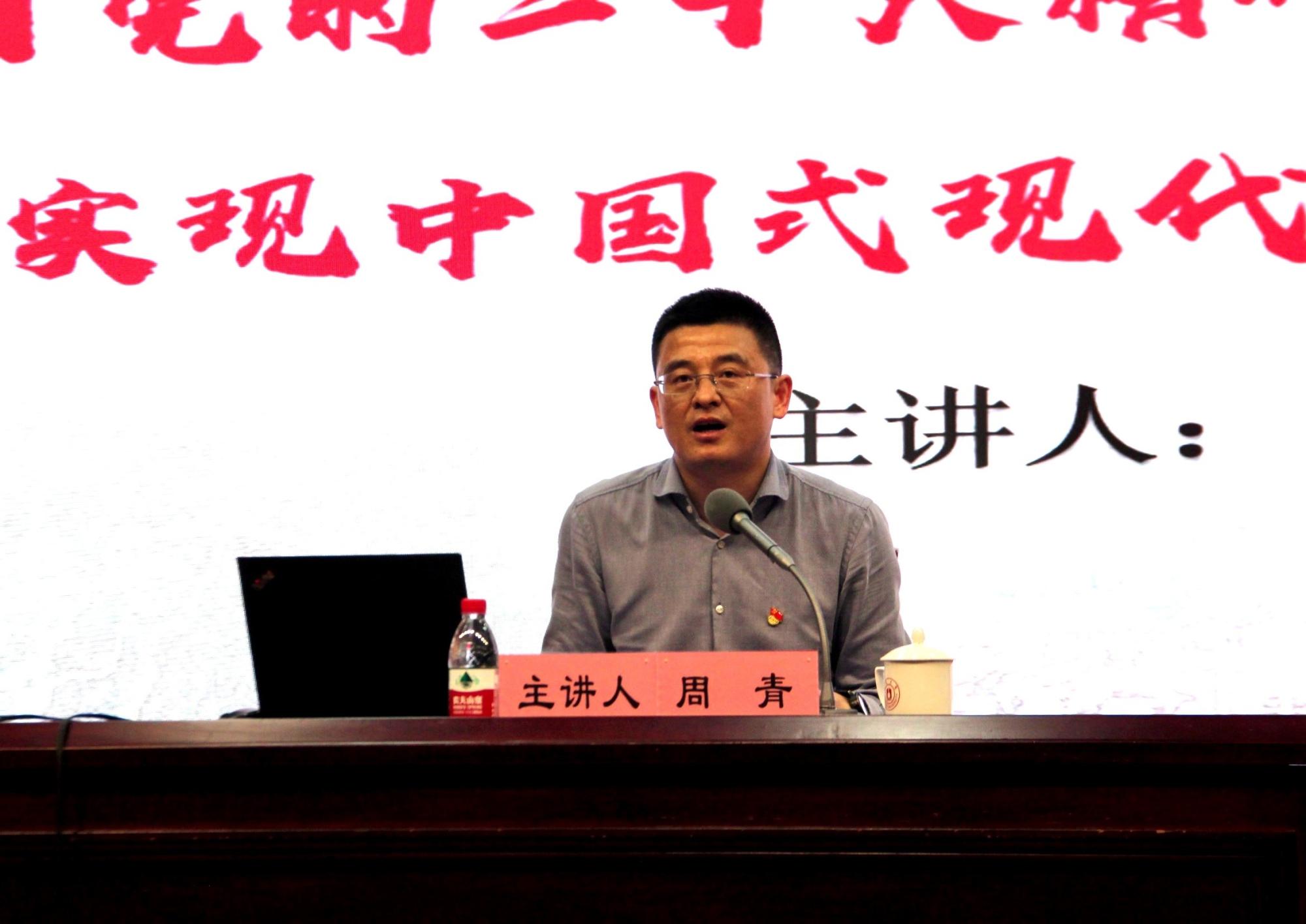 随后,讲座以党的中心任务为抓手,以中国式现代化发展历程为主线,具体介绍了中国共产党在探索和实践、推进和拓展“中国式现代化”的70多年历史。周青老师指出,只有深刻把握中国式现代化内涵、坚定遵从“两步走”战略、牢牢把握“五项重大原则”,才能在实现社会主义现代化新征程上走出一条崭新的中国道路。他呼吁年轻教师和青年学子要抓住机遇,积极奋进,到广阔的舞台上去施展才干,为推进中国式现代化事业奉献自己的青春力量。