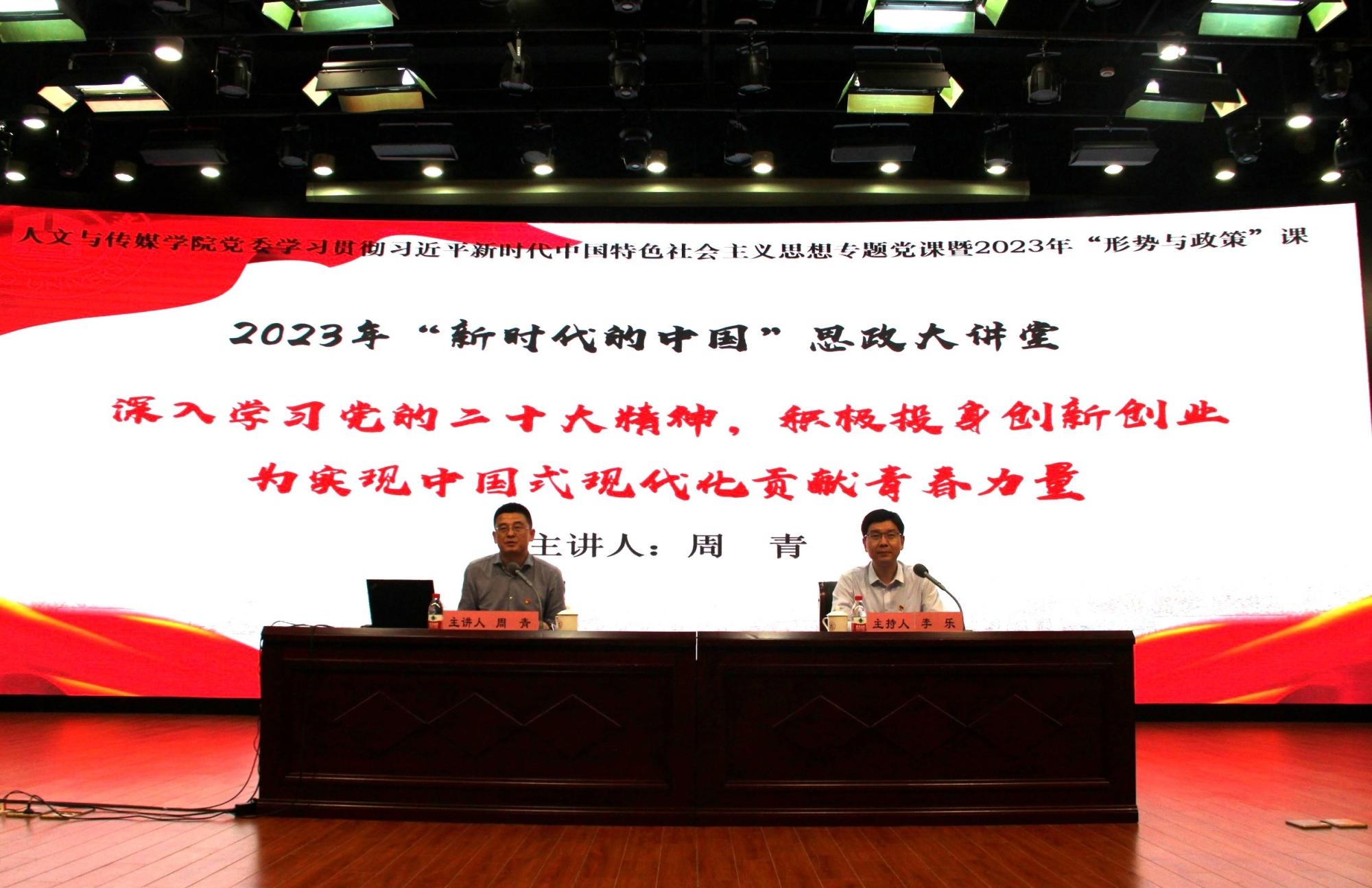 党委学习贯彻习近平新时代中国特色社会主义思想专题党课暨2023上半年“形势与政策”课在真诚图书馆报告厅举行。自拍