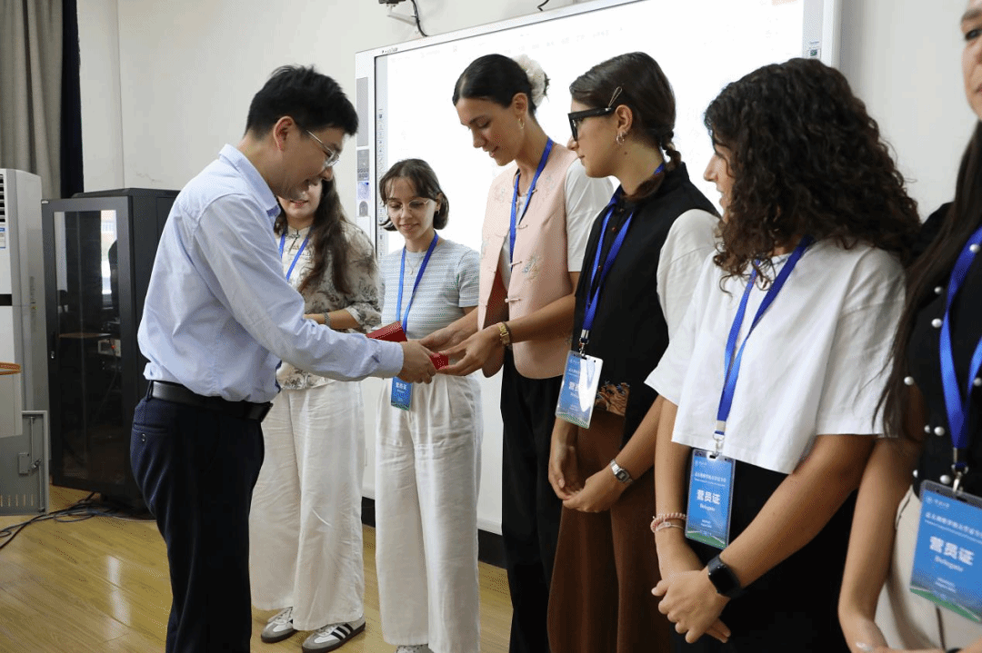 国际处处长周洵瑛为维罗纳大学来访师生颁发了证书,以表彰他们在夏令营中的出色表现。而李乐院长则代表学院向维罗纳大学师生赠送了精心准备的伴手礼,寓意着两校之间的深厚情谊。