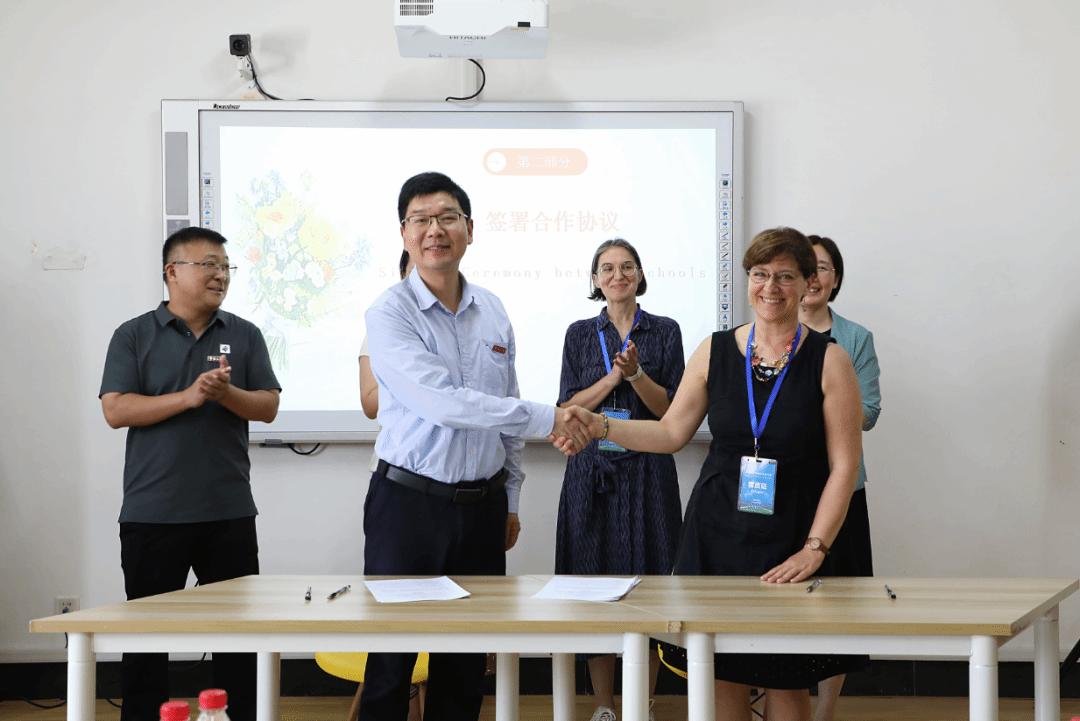 执行院长李乐与维罗纳大学外国语言与文学学院院长Facchinetti Roberta共同签署了院级合作协议。这一重要时刻标志着两院在学生交换合作、文化交流等方面迈出了坚实的一步,为未来的共建发展奠定了良好的基础。