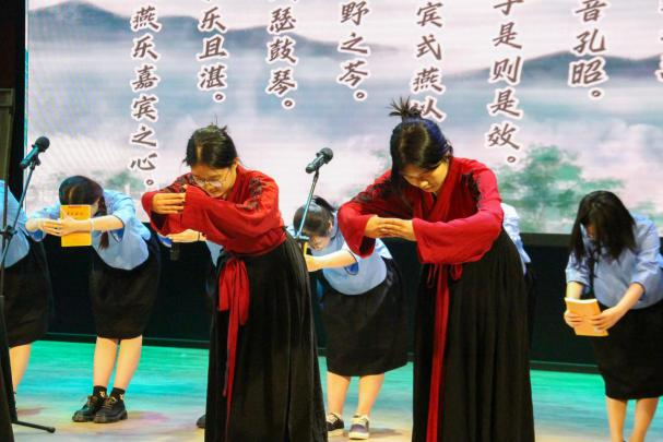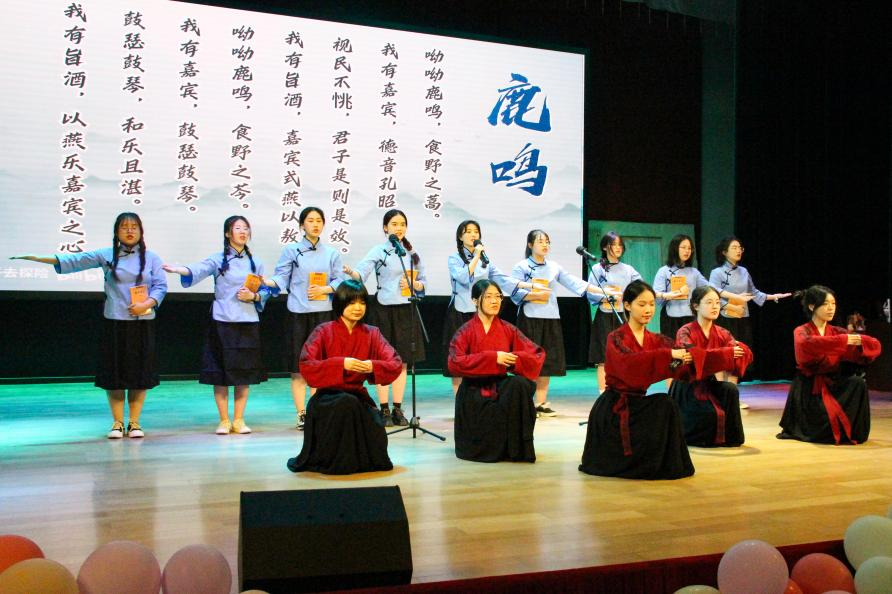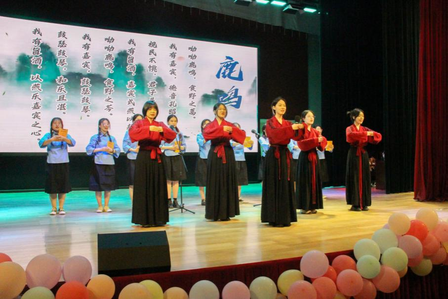 “呦呦鹿鸣,食野之苹”,《诗经》中悠扬的古调正是我们人文学院“乐鸣”吟诵团的首次亮相。从第一次排练到如今登台演出,过了半月有余。在老师们的悉心指导下,团员们齐心协力设计动作、编排队形,将《鹿鸣》尽力演绎完美。虽然过程艰辛,但在练习中队员们彼此熟悉,对诗文本身有了更为深刻的理解。与此同时,在排练的过程中我们也收获了“美育”教育,我们在诗意与远方中探寻中华文化基因,在生活之美中感受浓厚的情怀,重现礼仪之邦,寻找到我们文化的“初心”。