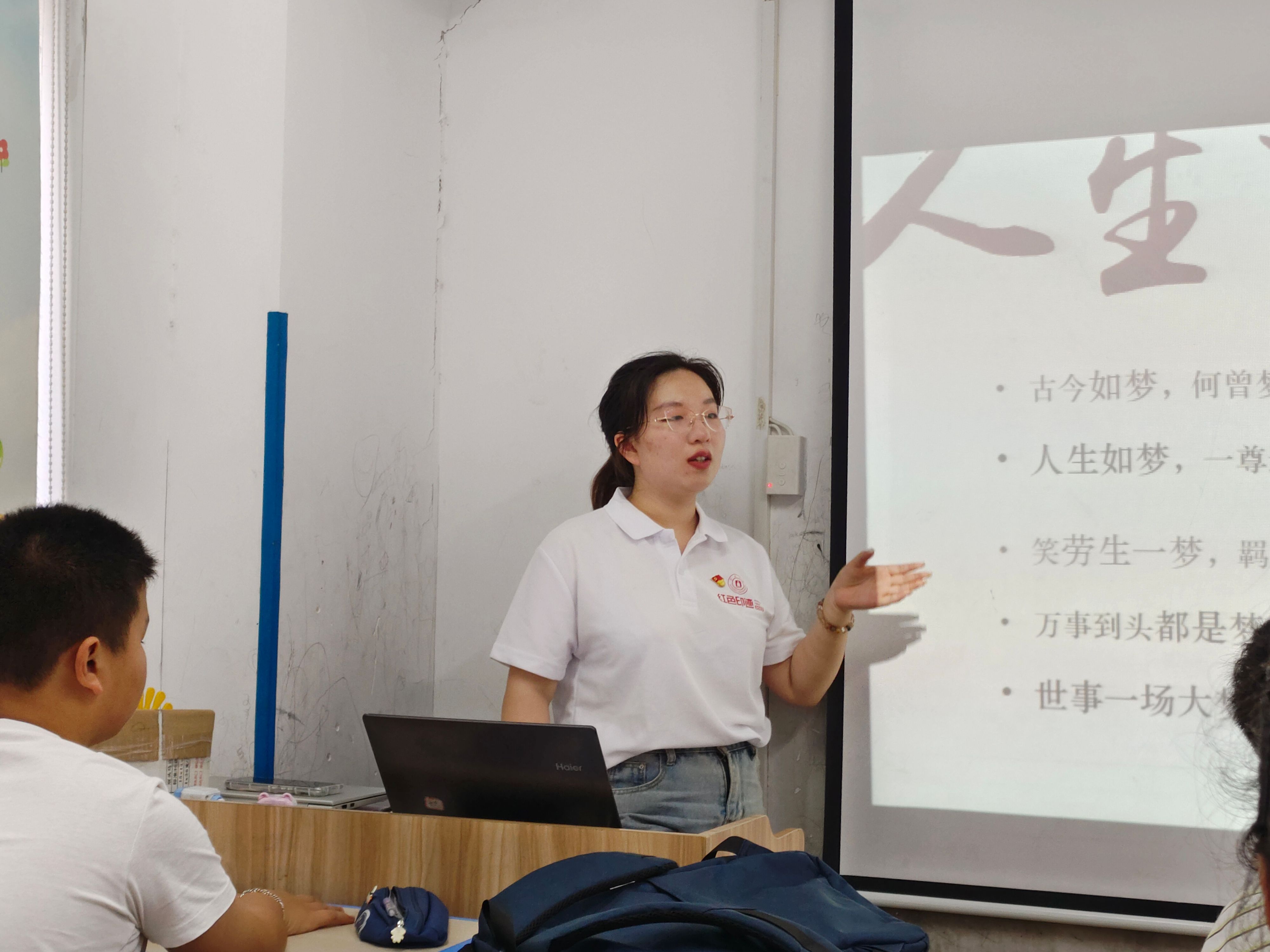 7月5日,团队成员借助线上设备同贵州省兴仁市第七中学的同学们展开交流,为当地的孩子们带来了一堂彰显中华传统文化魅力的诗词鉴赏课。团队成员柯舒凌以重读李商隐的诗歌《夜雨寄北》为主题,讲述诗人的生活经历,展现时间的珍贵与生命的悠长。柯舒凌结合自身经历,细致讲解了“君问归期未有期”、“巴山夜雨涨秋池”等句子,让贵州的同学们感受到诗人内心的孤独和无助,同时也引发了对人生的思考和情感的共鸣。