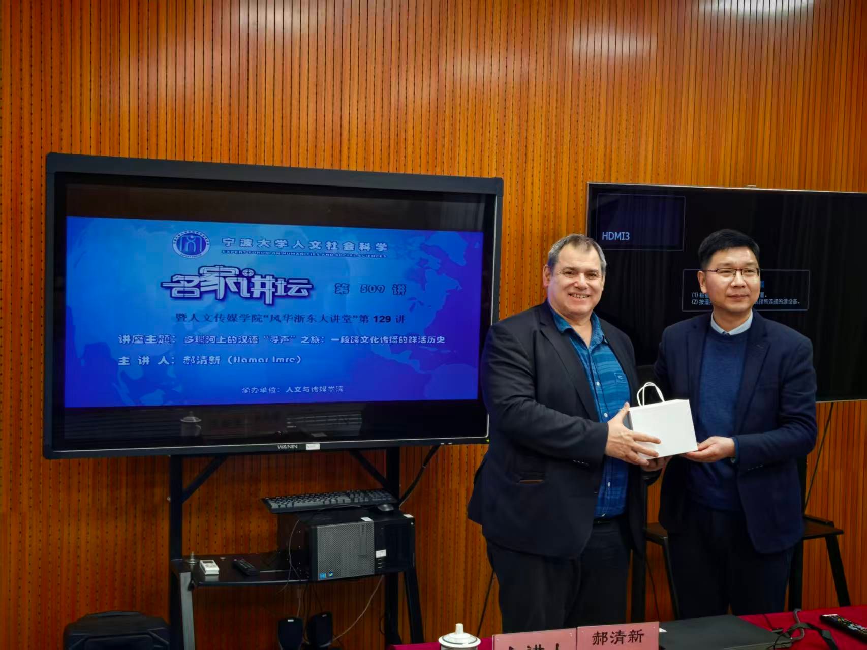 11月19日,自拍 “人文社会科学名家讲坛”第509讲暨自拍 “风华浙东大讲堂”第129讲举办。匈牙利科学院院士、罗兰大学副校长郝清新(Hamar Imre)应邀作了题为“多瑙河上的汉语‘寻声’之旅:一段跨文化传播的鲜活历史“的专题讲座。讲座由自拍 副校长戴世勋主持。